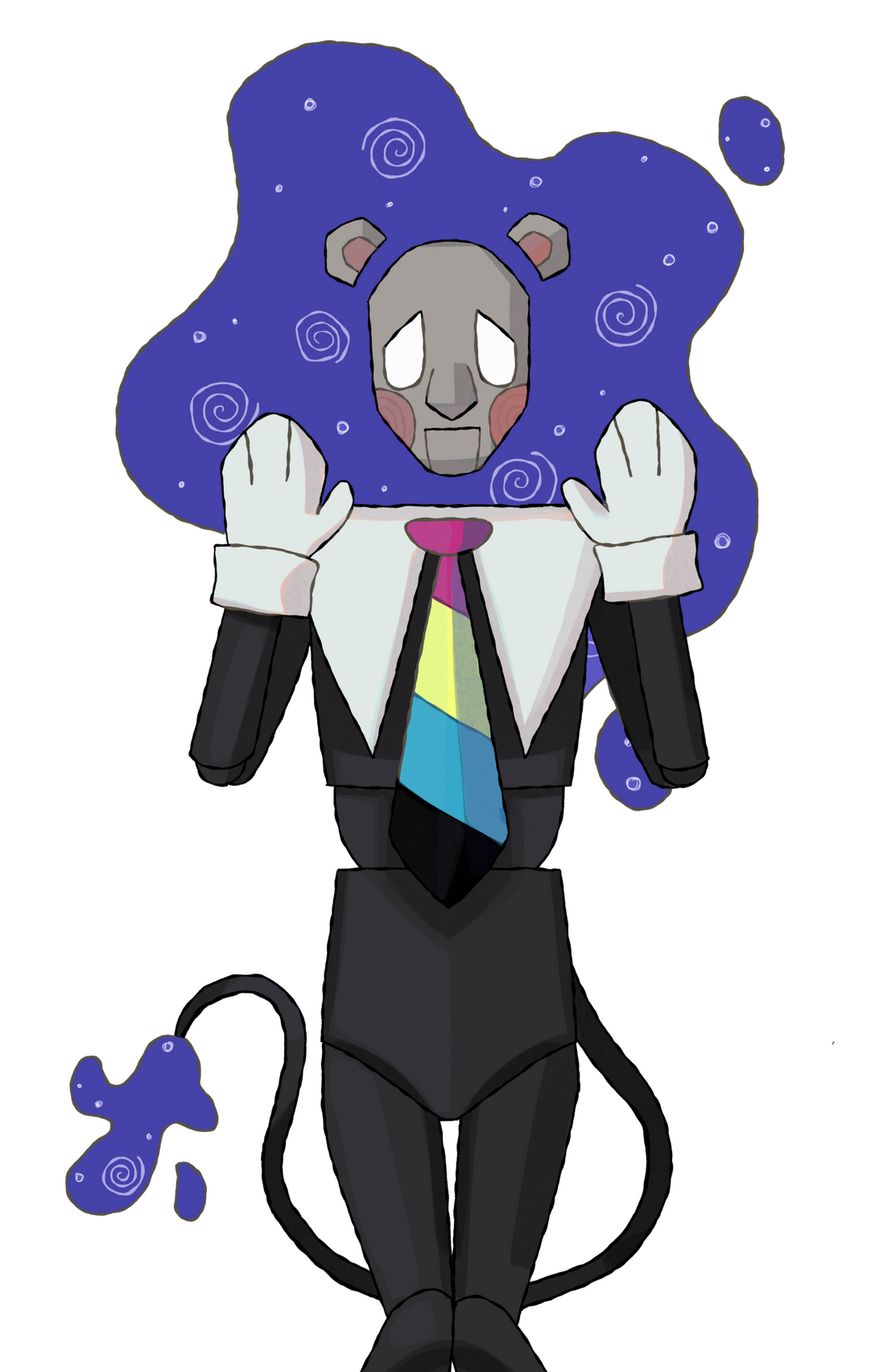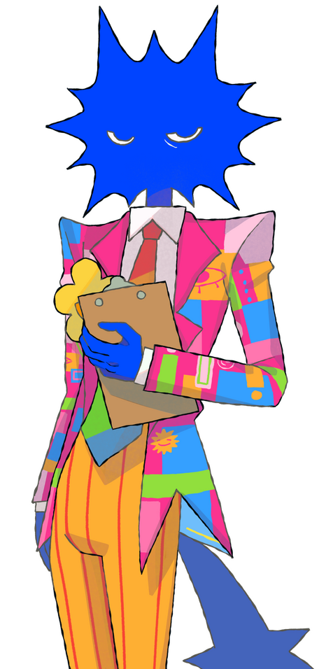 Boss is the eclectic head of the PAP tv station, a position that he adores primarily for the opportunities to impose his own whims over others. He is much like a spoilt child in the ways he directs his subordinates, being incredibly selfish, flighty, and immature. He has little interest in more difficult or uninteresting maintenances, often shirking them off onto others so that he can spend more time pursuing his own immediate pleasures. While Boss is typically scatterbrained, there are also moments of inordinate intelligence that seem to peek through at seemingly random times. These moments typically still revolve around his own self-centred and silly nature.voice: Energetic mid range male voice. Relaxed and conversational as the baseline, able to jump quickly into frantic, sarcastic, panicked, or theatrical tones. Flexible pacing, fast during chaotic bits, slower during quieter moments. slight rasp when excited is welcome. Should sound approachable underneath the chaos. ability to shift tone fast and make spontaneous noises (to distract his opponents obviously).VA: Neonsomble