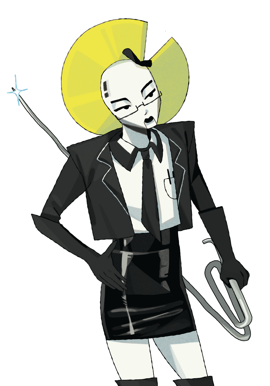 Secretary is the proficient and begrudging right-hand woman to Boss, handling all of the tasks he cannot be bothered with or cleaning up messes caused by others. She is highly competent when compared to her wacky coworkers, and on the surface perfectly performs the stereotype of the polished, (if a bit grumpy) dutiful office assistant. Her underlying resentment occasionally slips through via dry or snarky remarks, although it seems she can never outright refuse Boss’s tasks. Reprogrammed from an older model, Secretary sometimes speaks in what sound like canned sitcom lines, or defaults to more shallow and upbeat behaviours that amplify her soap opera “secretary” style even more. These moments can be a bit jarring in serious situations, but are scarcely addressed.voice: Polished and pleasant on the surface, with tightly restrained irritation underneath. Exasperation should seep through even when she tries to sound agreeable. Very rarely genuinely amused, and even when angry she clearly holds back the worst of it and hates it. Has a slight Slavic accent.VA: Lil Liffy